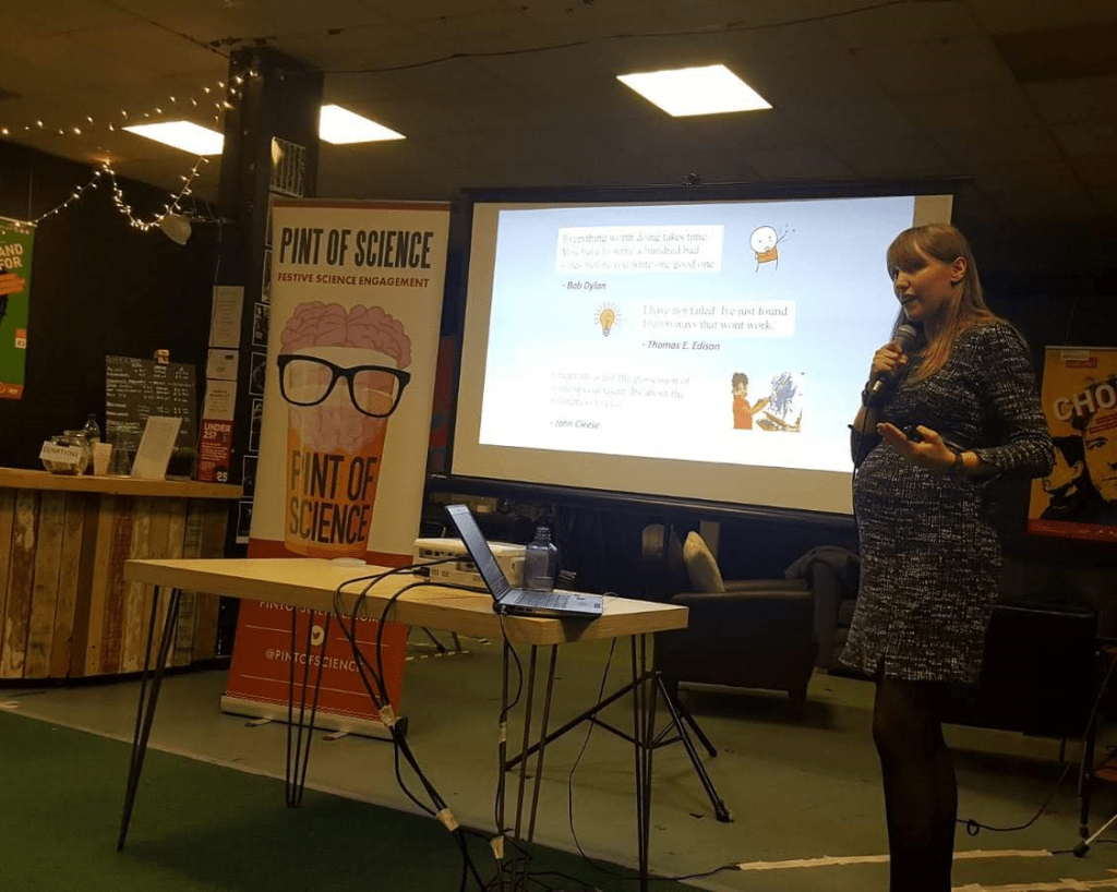 In 2019, whilst pretty pregnant, Valerie presented on the cognitive science of imagination and creativity during the Pint of Science festival in Coventry, United Kingdom. Together with the audience, she explored how imagination works in the brain, and how creativity is not property of the arts.